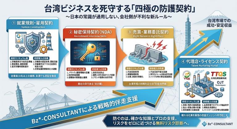 なぜ必要か: 台湾の競合他社は、貴社の優秀な人材と共に「顧客リスト」と「技術」を狙っています。実効性のないNDAは、ただの紙屑です。