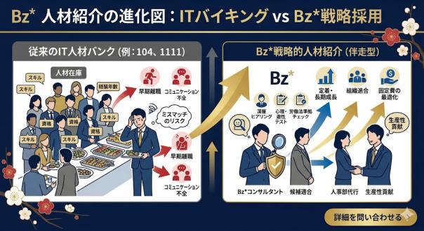 「人材紹介の進化図(ITバイキング vs Bz*戦略採用)」